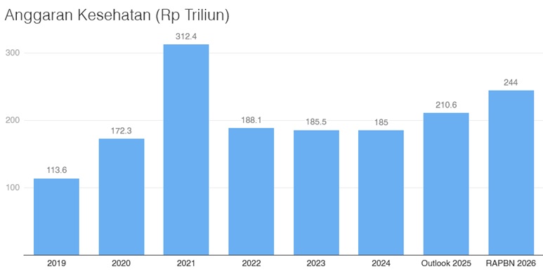 Dalam Nota Keuangan, pemerintah menetapkan anggaran kesehatan sebesar Rp244 triliun atau naik 15,8 persen dari outlook 2025 senilai Rp210,6 triliun. Peningkatan ini menegaskan komitmen pemerintah memperluas akses dan meningkatkan kualitas layanan kesehatan masyarakat di seluruh Indonesia.